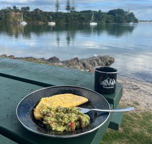 Toasties (we love a pesto mozzarella combo), are a warm and comforting option - particularly if paired with a soup for those colder van life days. Just load up with your favourite fillings and fry on the pan on both sides.