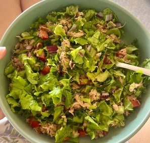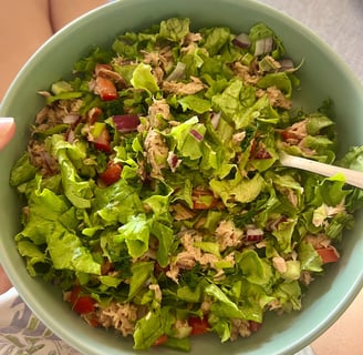 Tuna salad, or any salad for that matter, is a great option on hot days where you a) don't want to stand around cooking and b) want something quick and easy. Mix canned tuna with your favorite salad vegetables, maybe drizzle some dressing or simply olive oil and enjoy.