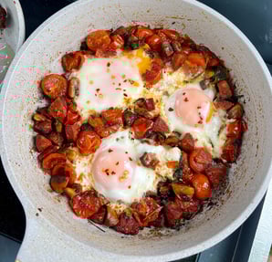 Shakshuka is a versatile one-pan dish that doesn’t have to be reserved for breakfast. It's easy to prepare with ingredients such as eggs, tomatoes, and bell peppers. Feel free to add your favorite spices or vegetables to make it your own.