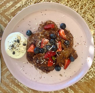For a sweet treat, whip up some banana oat pancakes. They require just a few ingredients and are perfect for breakfast or dessert. Drizzle with honey or greek yogurt - or both - and top with some fresh berries and nuts for the ultimate filling treat.