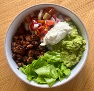 For a hearty meal, try a burrito bowl. Add packet rice to cooked beef, beans, and your choice of toppings for a satisfying one-pot delight. Personally, we love to add sour cream, guac, salsa and some chopped lettuce.